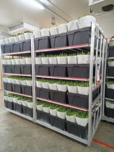 - 20% besparing op transport door efficiëntere belading van een veilingkar: 12 in plaats van 10 emmers per laag;